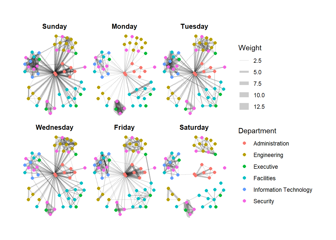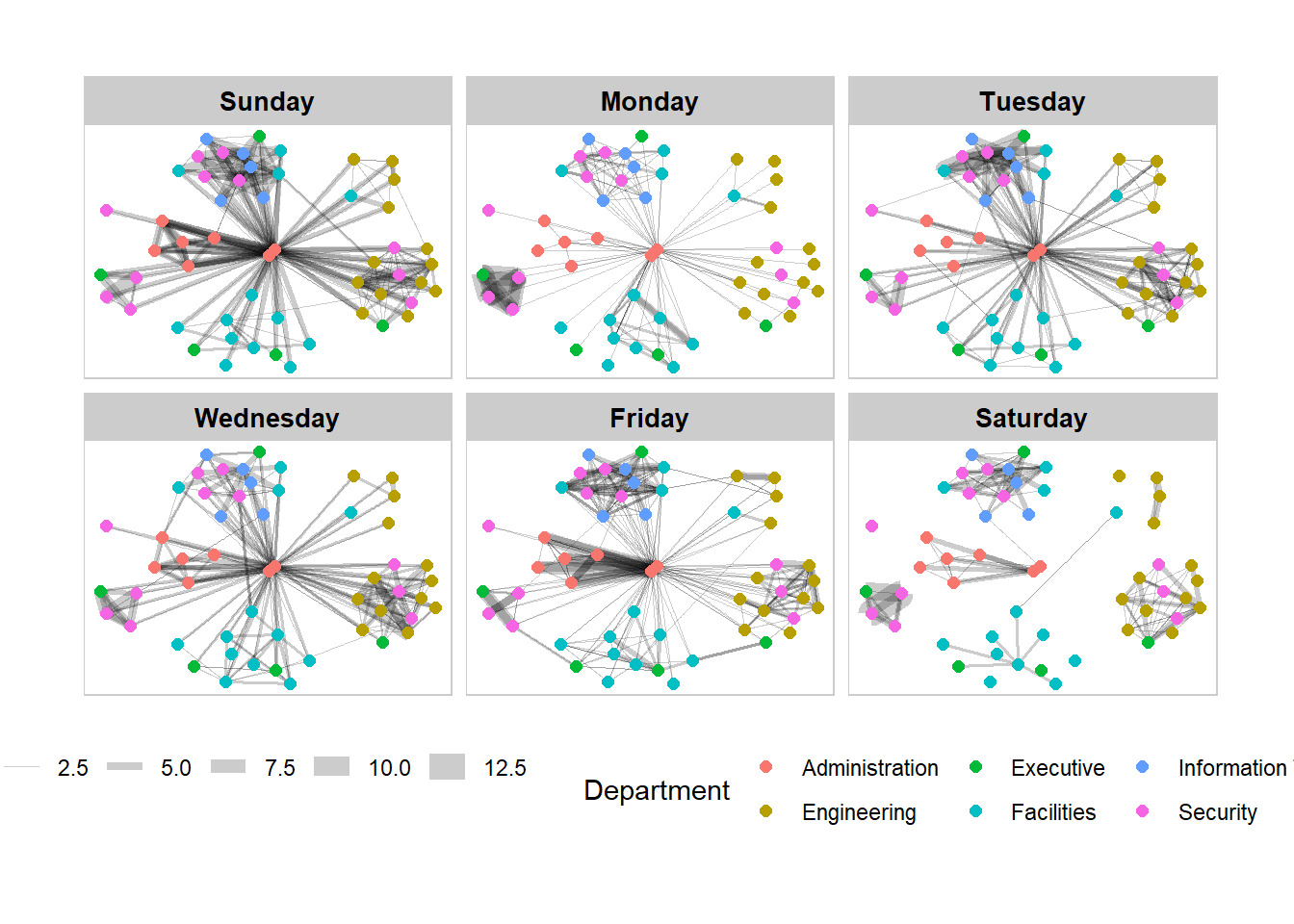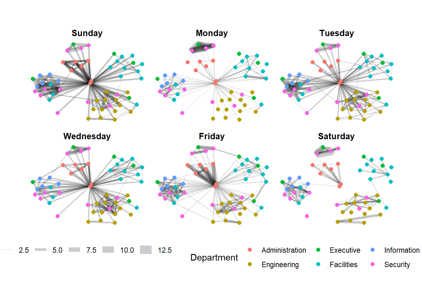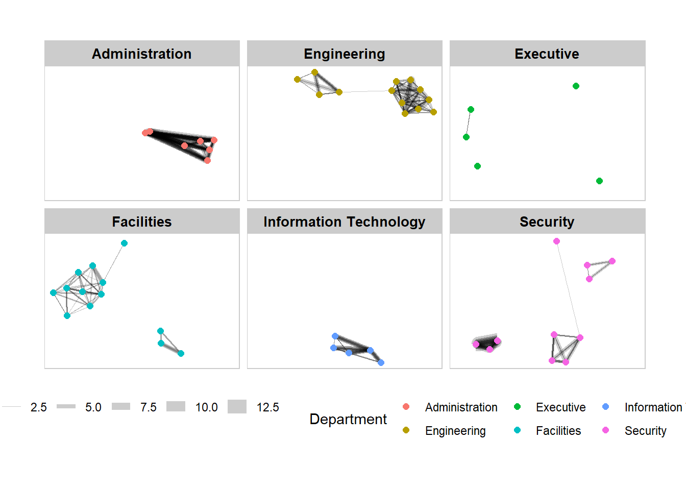 facet_nodes() whereby edges are only draw in a panel if both terminal nodes are present here, facet_edges() whereby nodes are always drawn in al panels even if the node data contains an attribute named the same as the one used for the edge facetting, and facet_graph() faceting on two variables simultaneously.